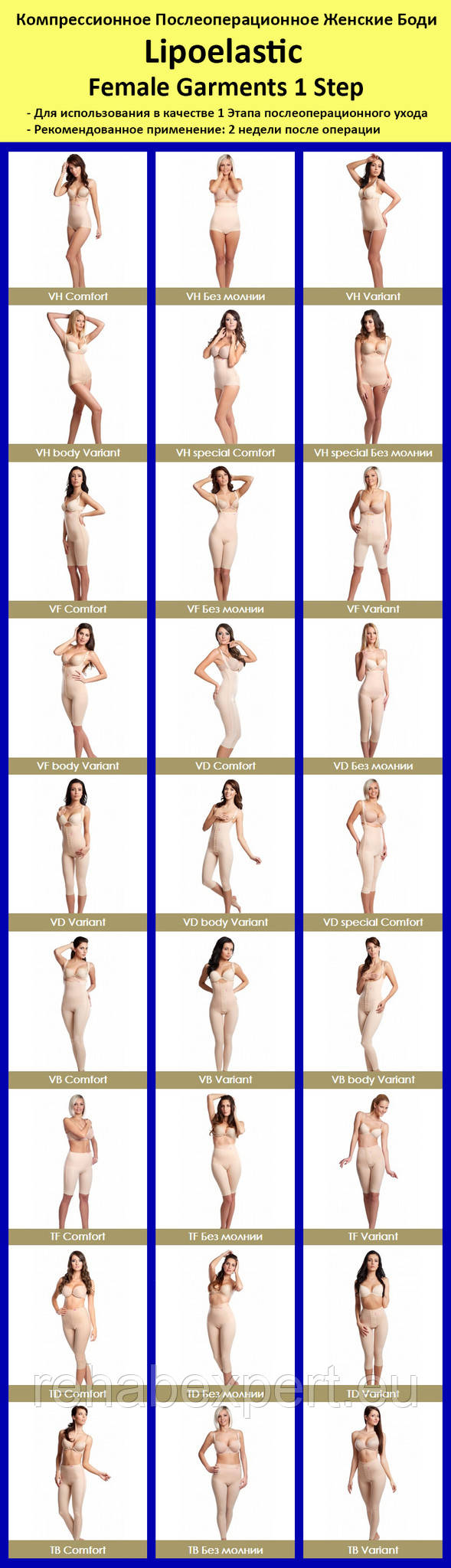 Компресійна Післяопераційний Жіночі Боді - Lipoelastic Female Garments Step 1