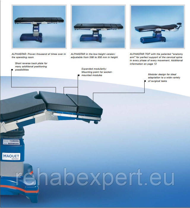- Модель MAQUET ALPHASTAR (низька версія) відрізняється можливістю низького